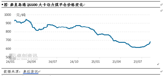 2025年以来,国内煤价先持续降至近五年低位后迎来明显反弹,主要是2025年上半年国内煤炭市场供需格局持续宽松,煤价承压不断下调,而进入6月下旬后,随着“反内卷”、“反超产”等政策出台、叠加国内需求改善,国内煤价迎来明显反弹,据卓创资讯统计数据显示,截至8月8日,秦皇岛港Q5500大卡动力煤平仓价格为681元/吨,较年内最低价(618元/吨)涨63元/吨,涨幅10.19%。较年初价格高点(775元/吨)下降80元/吨,降幅12.13%。